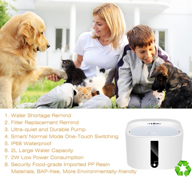 Lastnosti: pametni dozirnik vode volumen: 2L tiho delovanje opozorilo o pomanjkanju vode primeren za mačke, pse, ptice in ostale živali nizka poraba energije / tiho delovanje v primeru pomanjkanja vode, indikator pomanjkanja vode sveti modro in vodnjak se samodejno izklopi, da prepreči suho delovanje vhodna napetost: 220V, 50-60Hz, 0,1A teža: 1kg Z 2W nizko porabo električne energije lahko črpalka deluje skupaj 10.000 ur. Z veliko prostornino 2L vam ni potrebno pogosto napolniti vode in ste lahko brezskrbni, ko ste več časa odsotni. Vodnjak za hišne ljubljenčke je izdelan iz varnih materialov, brez BAP in okolju prijazen. Pametni dozirnik vode vsebuje sistem filtracije ogljika, ki…