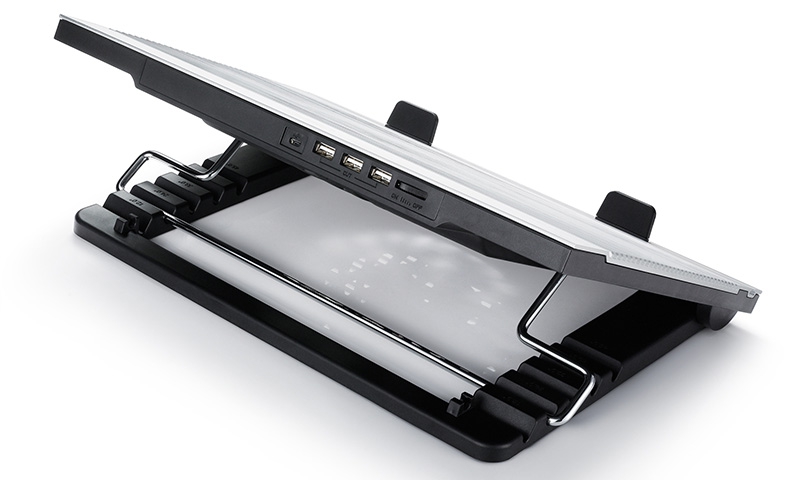 Hladilnik N9 je izdelan iz kombinacije aluminijastega panela in črne plastične osnove, ki zagotavlja kakovosten izgled ter stabilno in zanesljivo delovanje. 6 nastavljivih kotov uporabe, ki zagotavljajo najvišjo raven udobja za uporabnika.