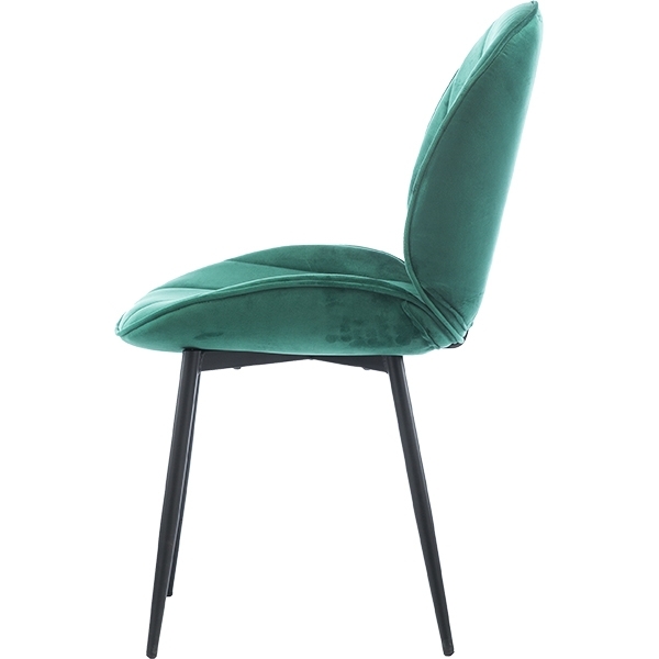 Na bivalnem stolu AMY, se boste počutili veličastno. Udobno široko sedišče, oblečeno v žametno tkanino bo poskrbelo za udobno sedenje.  S svojo kraljevsko zeleno barvo vam bo poživel življenje tako v domači pisarni, dnevni sobi kot tudi med razkošnimi domačimi obroki. Odlična izbira za ustvarjanje bogatega in prijetnega ambienta. Lastnosti: bivalni stol material: tekstil, pena, kovina in plastika število nog: 4 maksimalna nosilnost stola: 120 kg teža: 7,2 kg barva: zeleno-črn